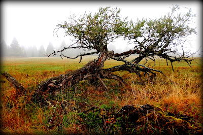 Příští ráno nabízí hned několik variant. S mojí pohodovou chotí si samozřejmě vybíráme tak zvanou Pohodu. Čeká nás necelých dvanáct pěších kilometrů s naprosto zanedbatelným převýšením. K našemu nemalému překvapení se k nám přidává jen jedna dvojice, mimochodem rovněž z nám příbuzné kategorie Sedmdesát plus. Jana a Pepík Vlkovi, bodří horalé ze Starého Zubří, nejsou žádnými turistickými greenhorny, takže si máme cestou od Hřebětic k Božím Daru pořád co vyprávět. Mlhami přizdobená otevřená krajina nás provází až k tajuplnému Mrtvému jezeru.